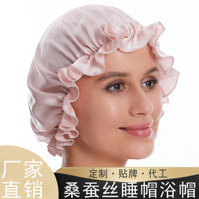 新款真丝睡帽 100桑蚕丝女士居家护发成人头巾丝绸...