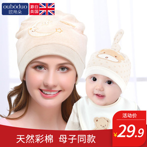 月子帽产妇帽刺绣猫咪女帽婴儿帽亲子套亚马逊跨境货源...