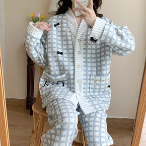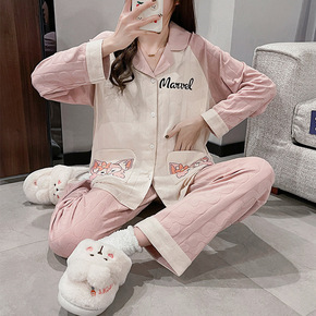 (现货)秋冬加厚空气棉孕妇睡衣产妇哺乳喂奶月子服夹...