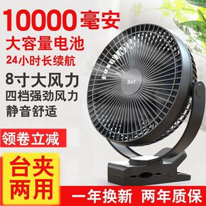 小风扇充电夹扇大风户外便携迷你办公桌面静音制冷8寸...