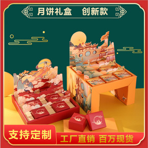 现货黄系3D立体 中秋味道动漫月饼包装盒翻盖盒带内...