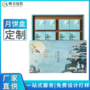 新款中秋软盒月饼礼盒折叠6粒8粒装天地盖中秋送礼中...