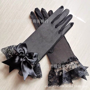 韩式黑色复古性感蕾丝化装舞会酒会手套镂空花边婚庆礼...