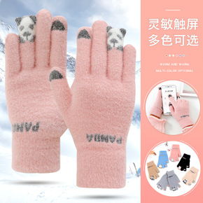 秋冬触屏保暖手套女士可爱学生五指亲子手套儿童冬天防...