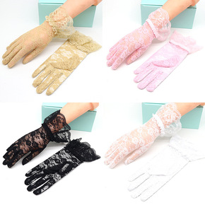 夏季女士薄款蕾丝无指手套短开车防晒防紫外线水兵舞表...
