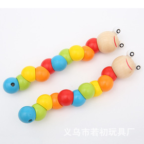 百变组合玩具木质扭扭虫彩虹十节彩色毛毛虫儿童益智玩...