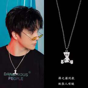 百搭薛之谦同款纸袋木偶人镀银潮流ins男女简约项链...