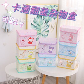 卡通桌面收纳盒带盖子防尘储物盒化妆品整理箱学生in...