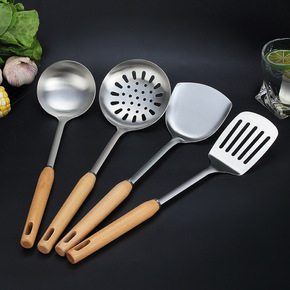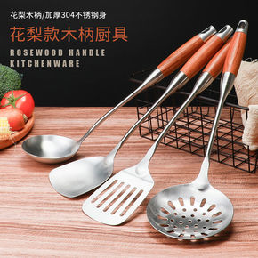 现货304不锈钢锅铲防烫榉木汤勺捞篱厨房厨具套装饭...