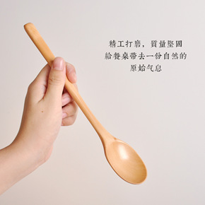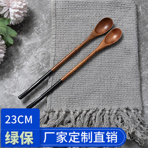 天然环保日式长柄木勺子 特色创意实木餐具超长搅拌勺...