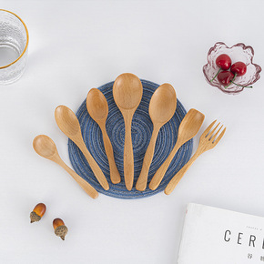厂家货源日式原木色甜品木勺复古木质儿童小勺荷木搅拌...
