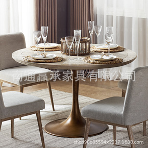 北欧实木圆形餐桌金属腿饭桌现代简约家用不锈钢桌椅组...