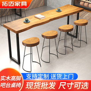 简约复古实木高脚吧台桌椅咖啡店奶茶店酒吧高脚桌椅商...