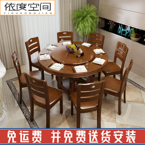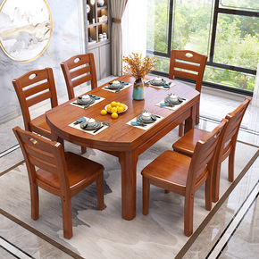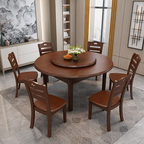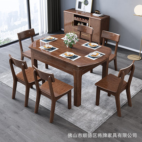 胡桃木实木餐桌椅饭桌小户型组合多功能伸缩折叠转盘桌...