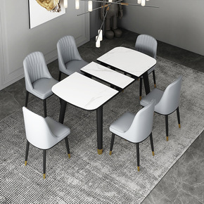 厂发轻奢岩板大理石餐桌椅组合可伸缩折叠现代简约家用...