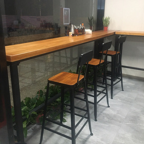 铁艺实木酒吧台桌椅组合咖啡厅奶茶店阳台靠墙长条高脚...