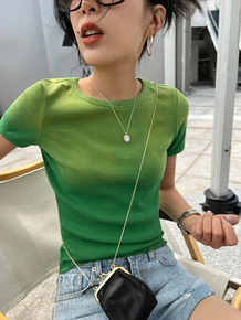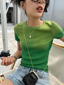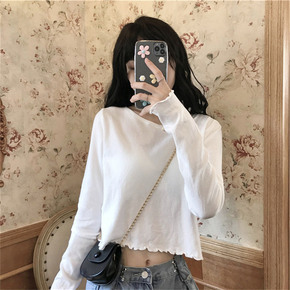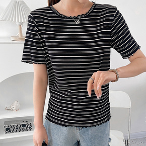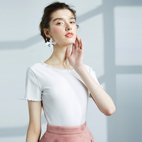 简约女装2021夏装新款弹力修身打底衫清新优雅拉边...