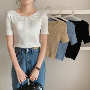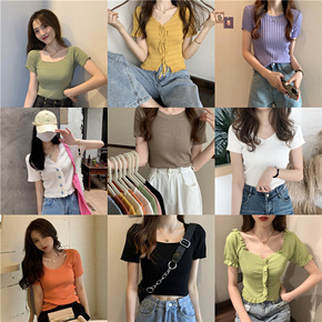 夏季新款女式针织短袖女装库存毛衫打底上衣厂家外贸尾...