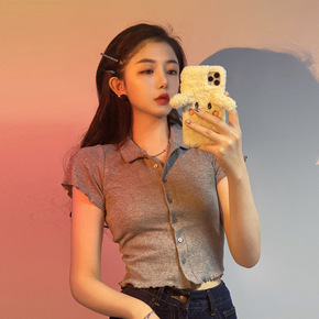 2022年夏季新款设计感短款小众内搭短袖方领打底小...