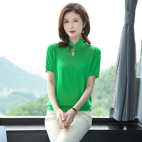 2022新款夏季中年妈妈韩版花边领时尚宽松大码打底...