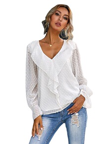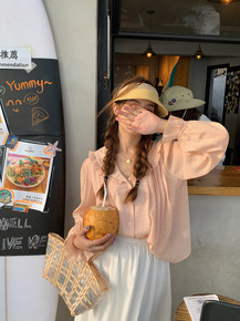 2022新款 时尚甜美V领纯色气质套头雪纺长袖女装...