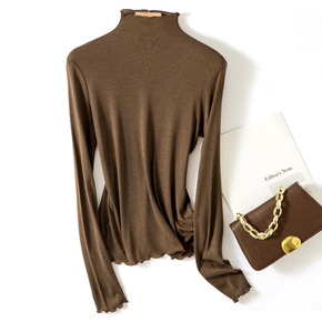 长袖韩版桑蚕丝打底衫半高领套头衫女2022春夏新品...