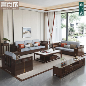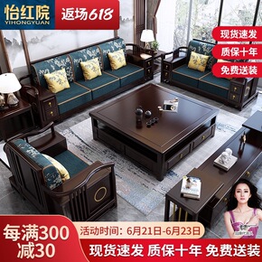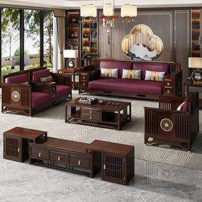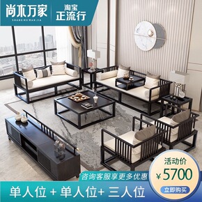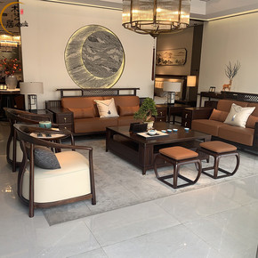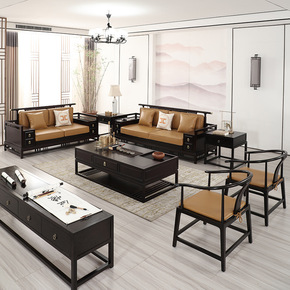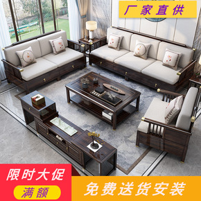 新中式实木沙发现代中式中国风高档别墅大户型乌金木真...