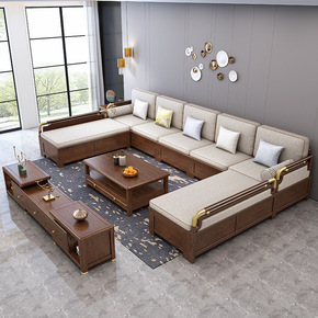 新中式实木沙发客厅现代简约轻奢大户型别墅茶几组合套...
