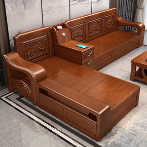实木沙发全实木组合现代新中式客厅储物家具冬夏两用小...