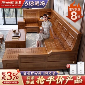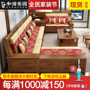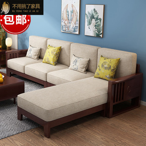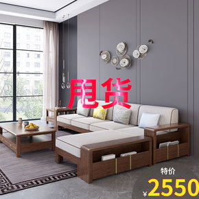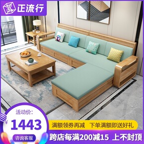 现代简约新中式实木沙发组合冬夏两用储物转角贵妃客厅...