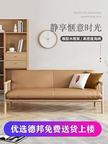 日式皮艺沙发小户型客厅全实木北欧橡胶木直排双三人沙...