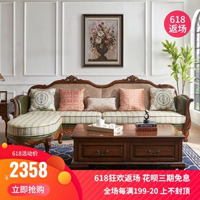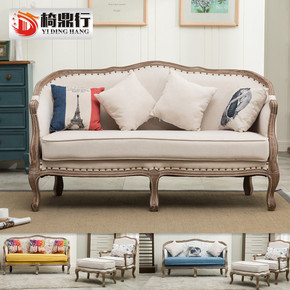美式乡村沙发布艺实木双人小户型复古法式田园风格家具...