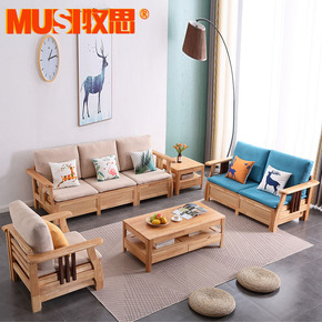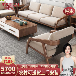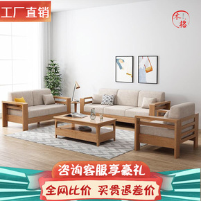 白橡木沙发全实木单人三人沙发北欧原木布艺客厅家具简...