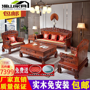 新中式沙发黑檀色别墅大户型客厅贵妃太师椅组合橡胶木...