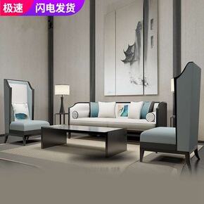 新中式现代简约实木布艺沙发组合酒店会所客厅中国风家...