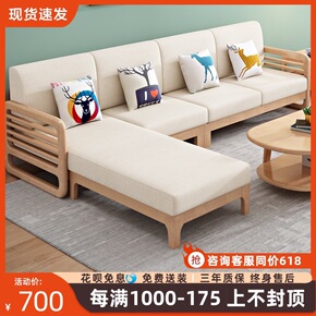北欧全实木沙发拉床组合简约现代布艺转角贵妃小户型原...