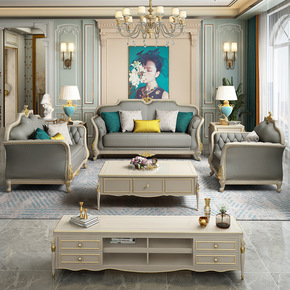 美式实木沙发客厅真皮沙发13组合欧式布艺沙发简约复...