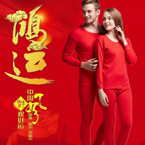 本命年内衣套装男大红全棉秋衣秋裤 男女婚庆保暖内衣...
