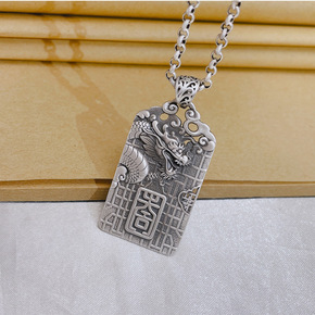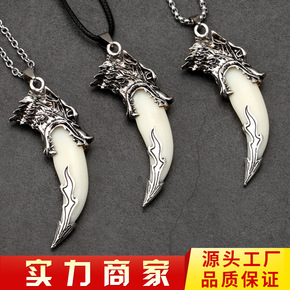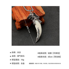 一件代发批发大狼牙造型项链男士狗牙霸气复古吊坠镶嵌...