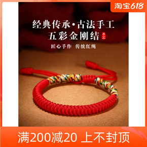 2022金刚结红绳手链女端午节五彩绳男手工编织手绳...