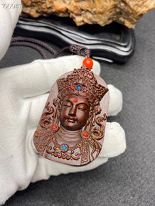 印度小叶紫檀木观音菩萨吊坠男士款本命年守护神项链紫...