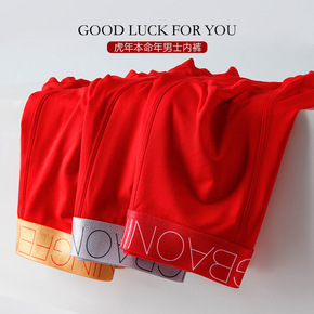 本命年男士内裤大红色纯棉平角裤本命虎年婚庆四角裤头...