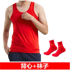 男士背心大红本命年吊带结婚内衣内裤袜子套装打底汗背...