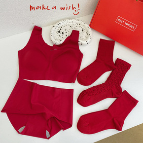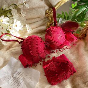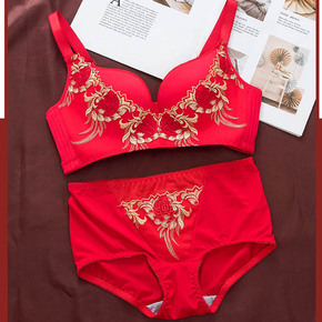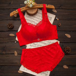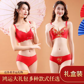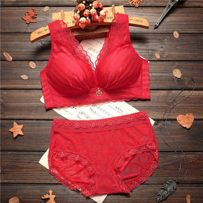 本命年属牛女红色整套内衣内裤套装小胸聚拢无钢圈结婚...
