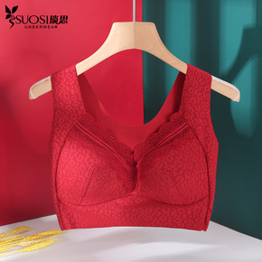本命年调整型无钢圈前扣内衣女性感小胸聚拢显大红色结...