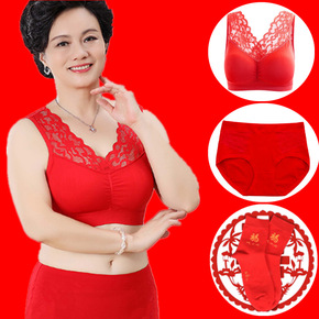 女士本命年内衣内裤套装女妈妈大红色薄款蕾丝美背胸罩...