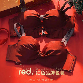 无肩带小胸聚拢内衣套装无钢圈礼服婚纱本命年红白色裹...