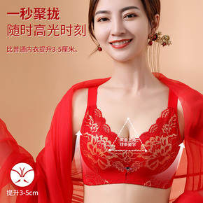 本命年新年大红色结婚蕾丝刺绣聚拢调整型收副乳无钢圈...