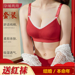 孕妇内衣内裤套装红色怀孕期纯棉聚拢防下垂结婚女本命...