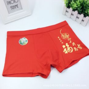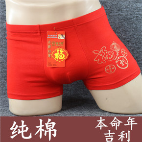 男士本命年红色内裤虎年结婚纯棉大红色平角裤厂家直销...